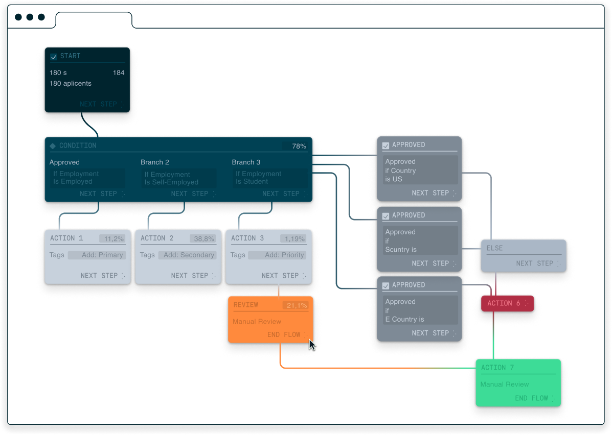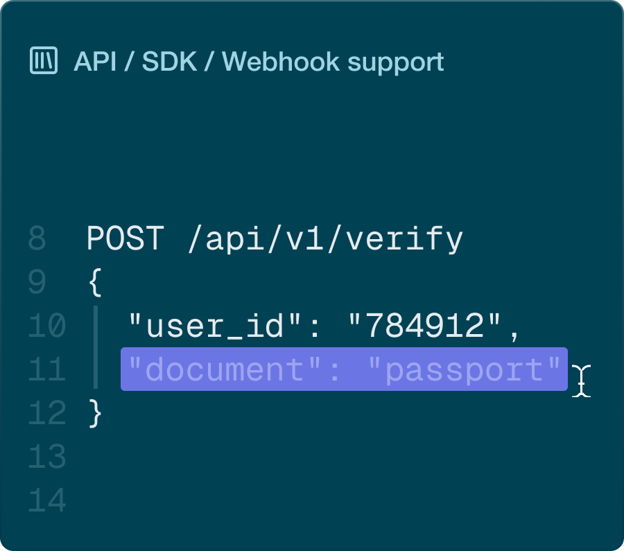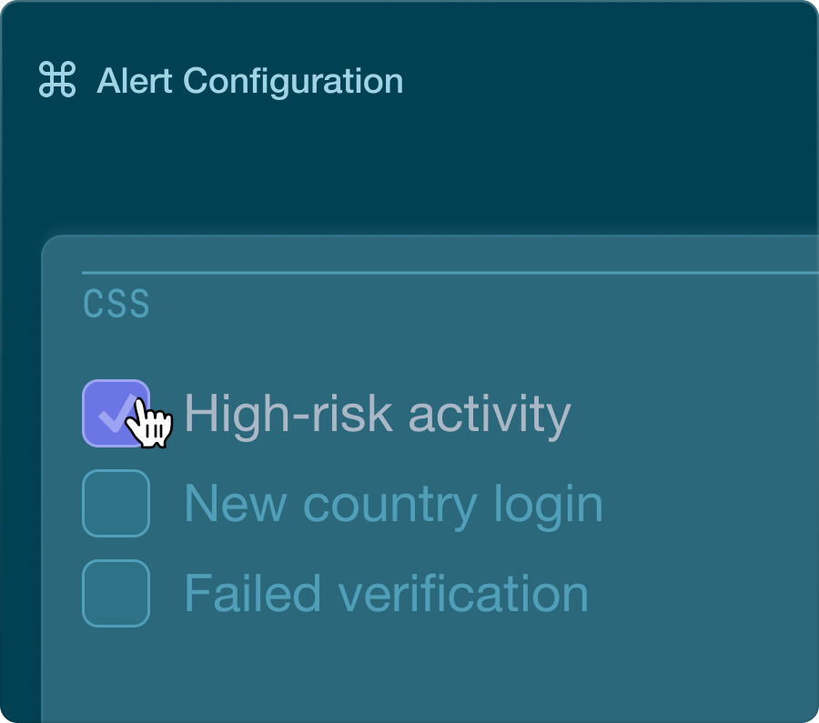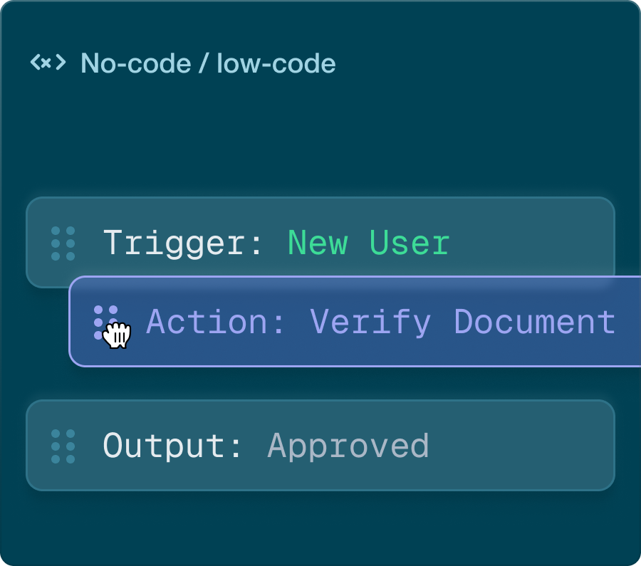 Configure and automate verification flows for any risk level, country, or scenario — no coding required.